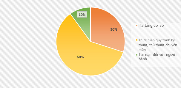 Từ biểu đồ 2.2 ta thấy, 60% sự cố xảy ra là do thực hiện quy trình kỹ thuật thủ thuật chuyên môn, 30% là do hạ tầng cơ sở, còn lại 10% là nhóm sự cố tai nạn đối với người bệnh.