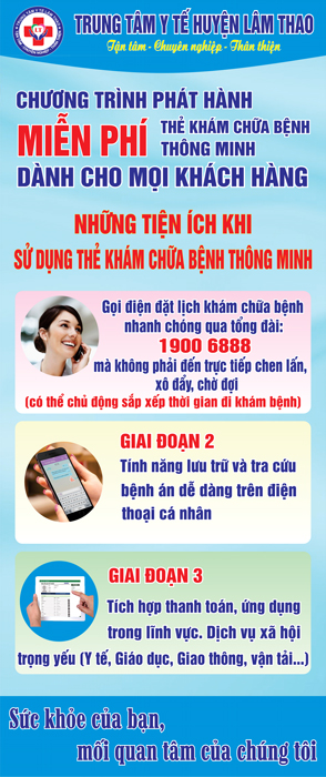 “Thẻ khám bệnh thông minh” là hình thức đăng ký khám bệnh mới vừa được áp dụng tại một số bệnh viện trong đó có Trung tâm Y tế huyện Lâm Thao. Với chiếc thẻ này, bệnh nhân chỉ cần gọi điện trước đến tổng đài đăng ký ngày, giờ, chuyên khoa khám. Sau đó đến đúng thời gian đã đăng ký, quẹt thẻ lấy số và vào thẳng phòng khám. Tất cả chỉ mất chưa đầy 5 phút.