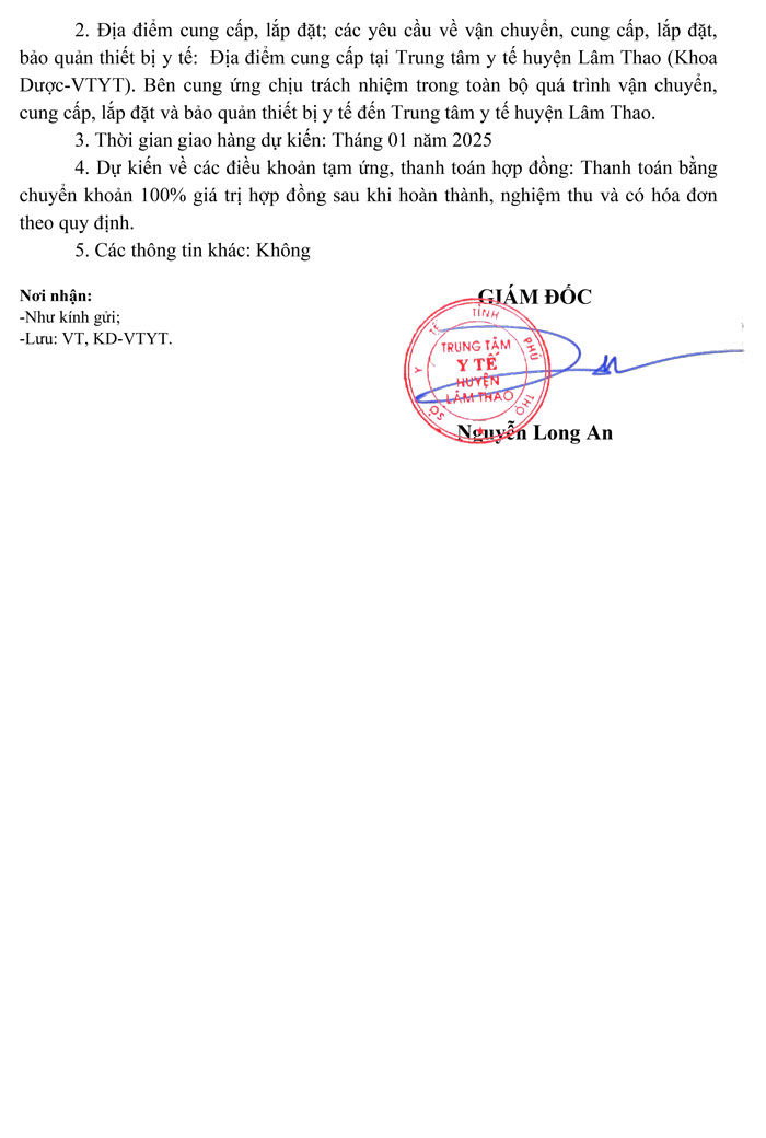 Trung tâm Y tế huyện Lâm Thao thông báo