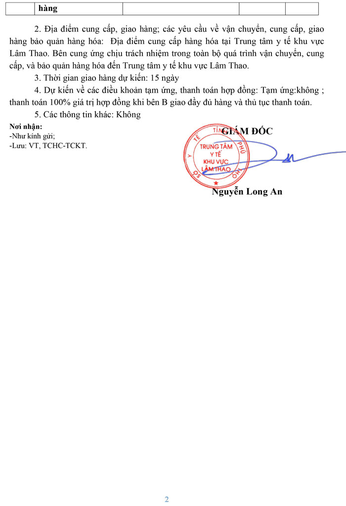 Trung tâm Y tế huyện Lâm Thao thông báo