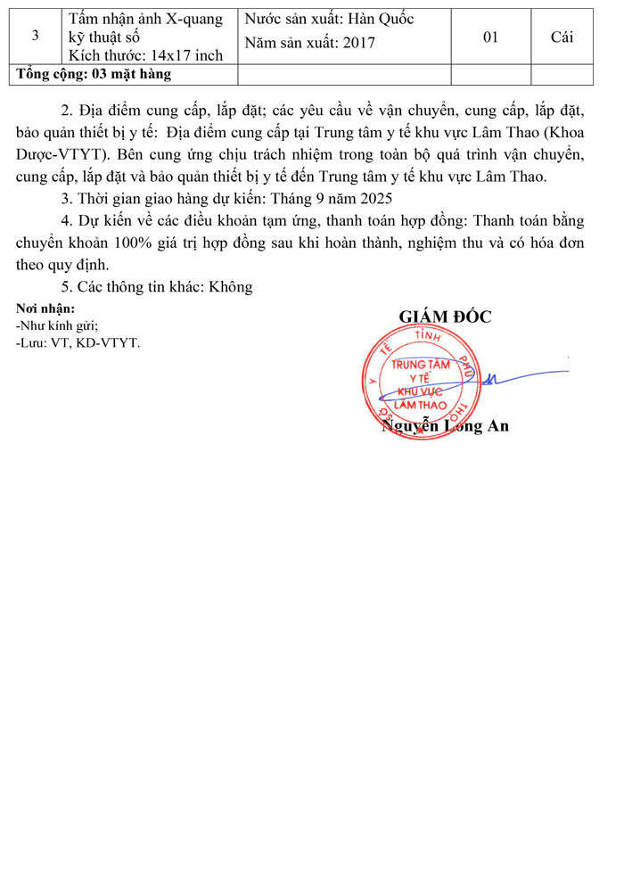 Yêu cầu báo giá máy chụp X-Quang EVA của Trung tâm y tế khu vực Lâm Thao