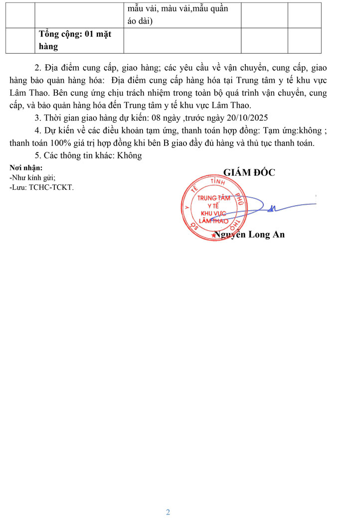 Yêu cầu báo giá may đo bộ áo dài phục vụ hoạt động của Trung tâm y tế khu vực Lâm Thao