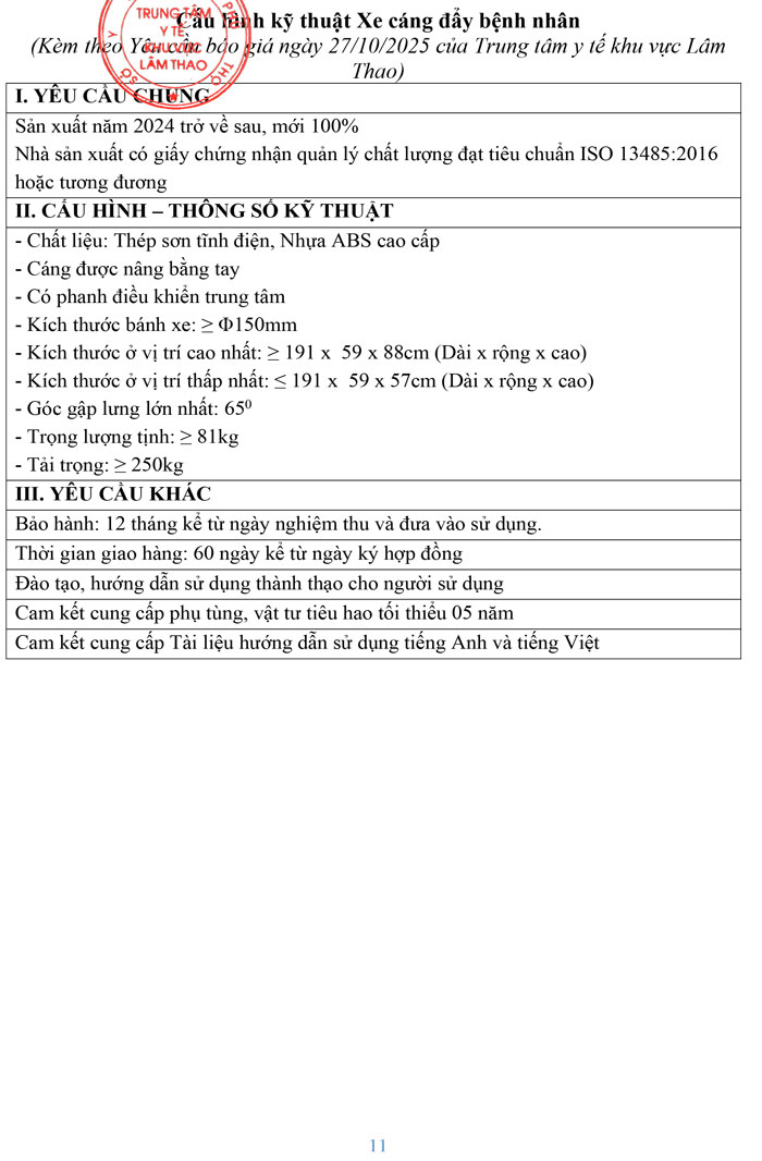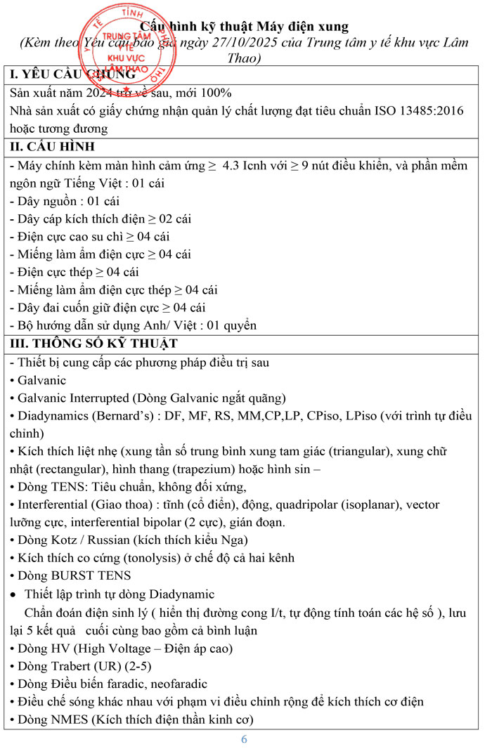 Yều cầu báo giá mua sắm thiết bị y tế phục vụ chuyên môn của Trung tâm y tế khu vực Lâm Thao