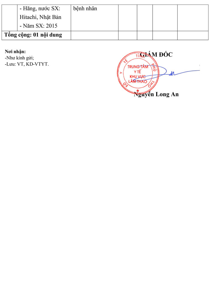 Yêu cầu báo giá sửa chữa Hệ thống chụp cắt lớp vi tính CT Scanner Supria Hitachi của Trung tâm y tế khu vực Lâm Thao