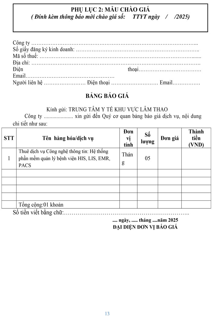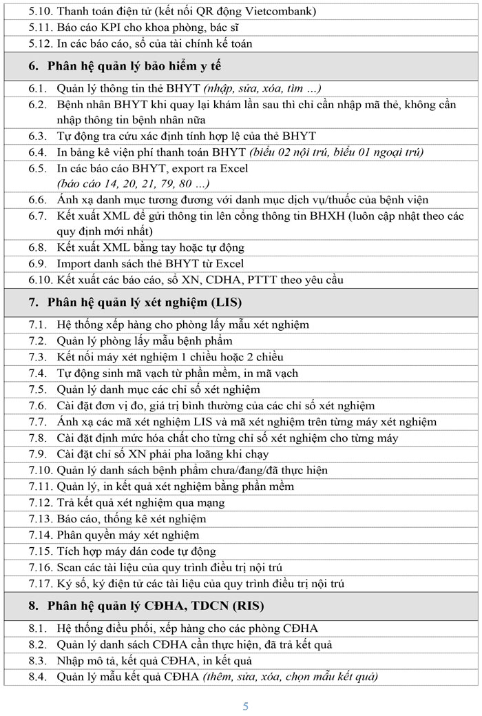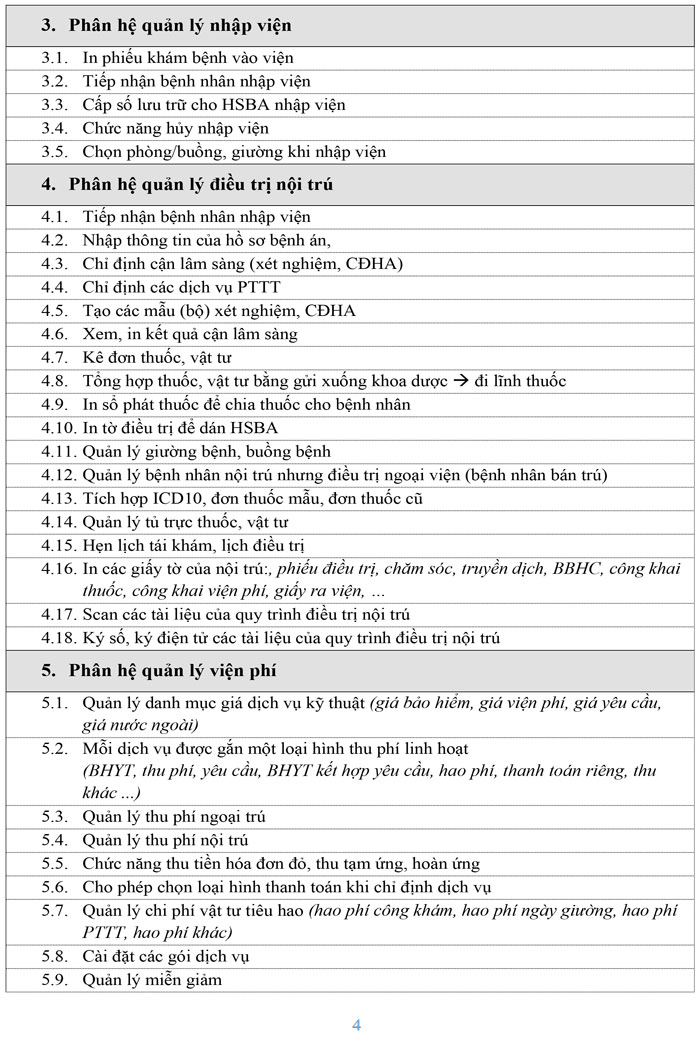 Yêu cầu báo giá thuê dịch vụ Công nghệ thông tin: Hệ thống phần mềm quản lý bệnh viện HIS, LIS, EMR, PACS
