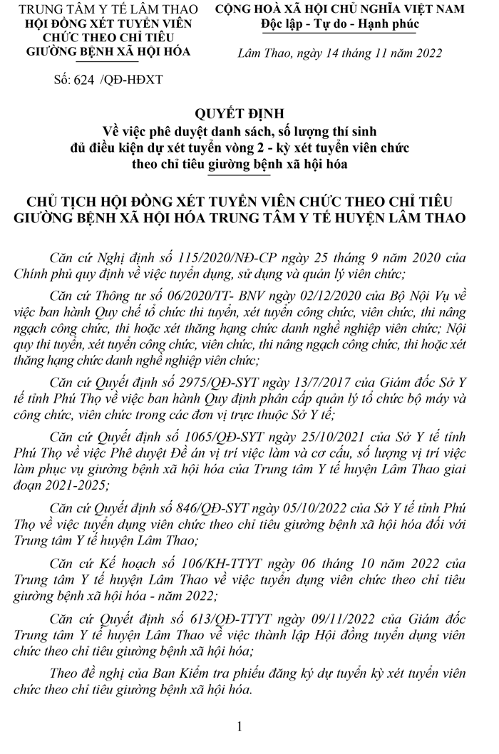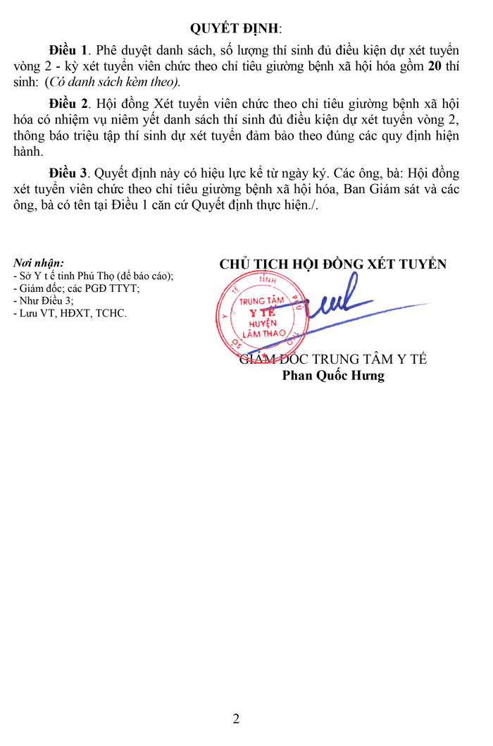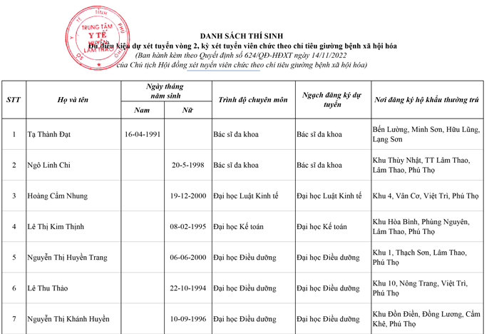 Quyết định phê duyệt danh sách thí sinh đủ điều kiện dự tuyển vòng 2