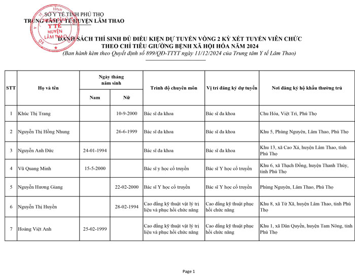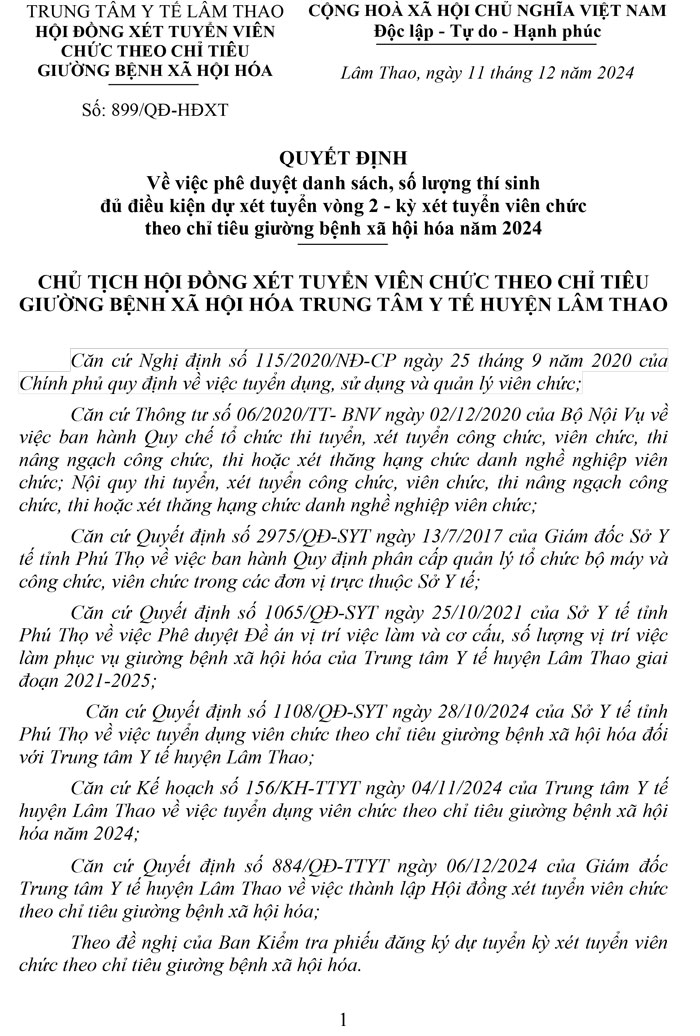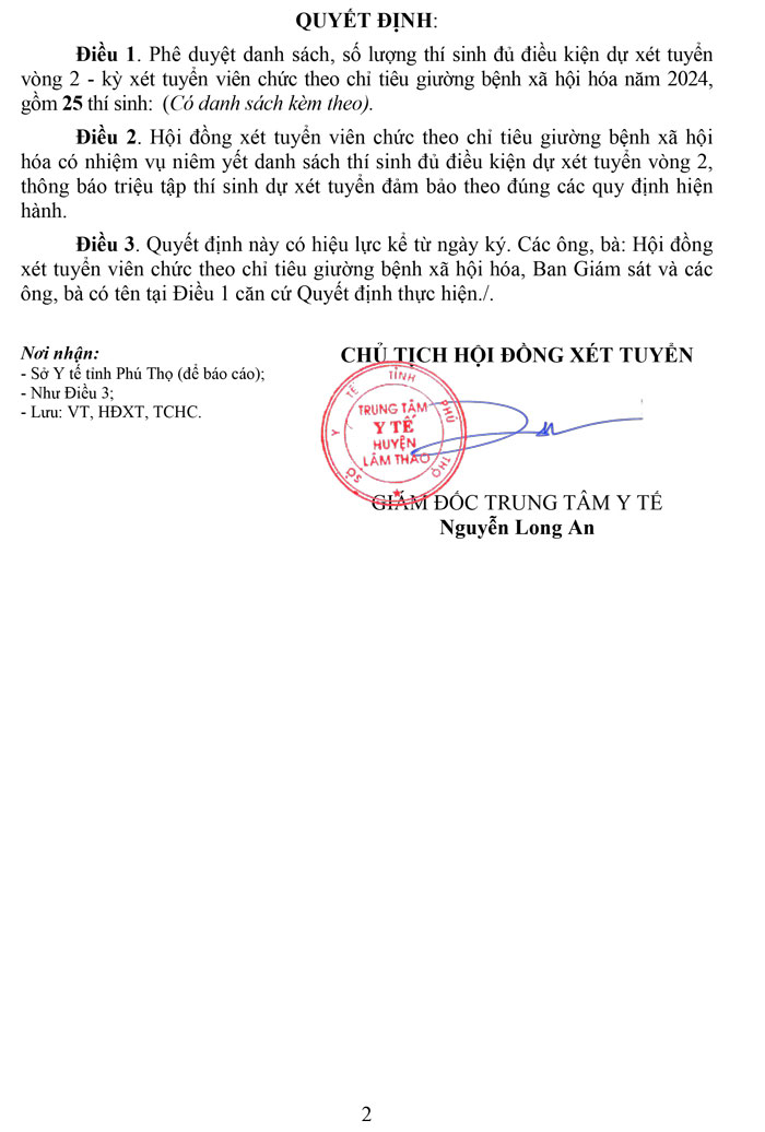 Quyết định về việc duyệt danh sách, số lượng thí sinh dự xét tuyển vòng 2 năm 2024