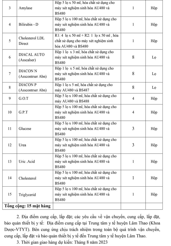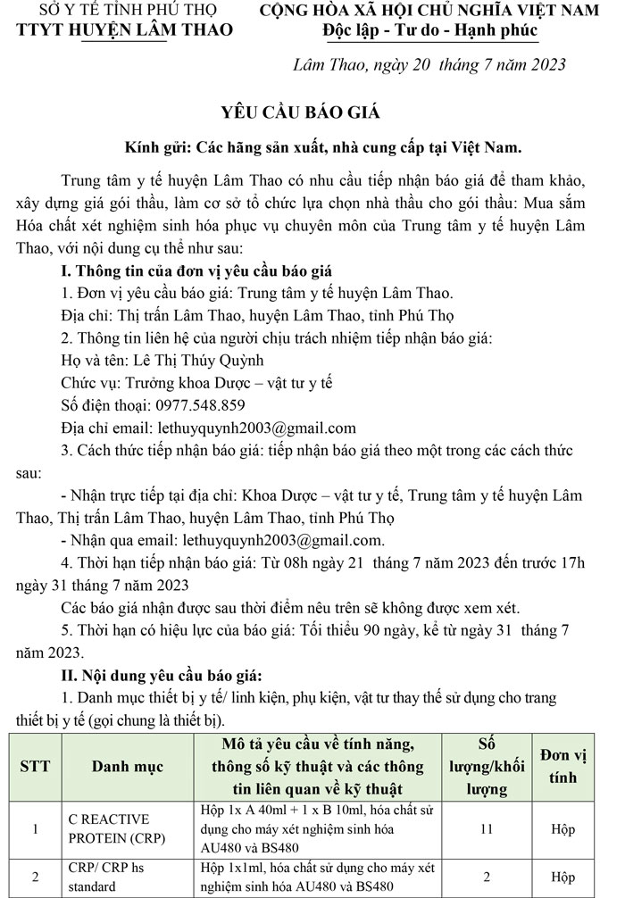 Yêu cầu báo giá hóa chất