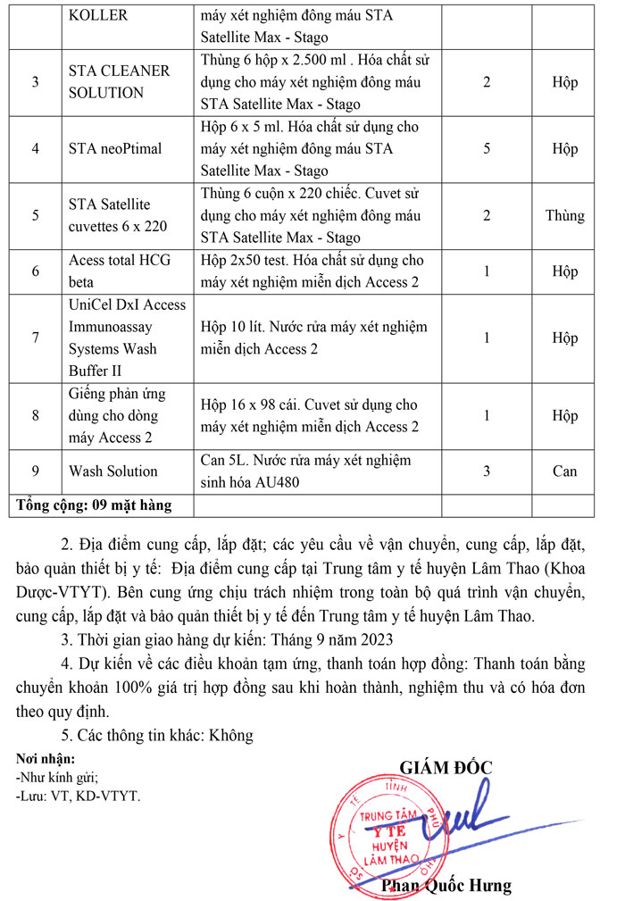 Yêu cầu báo giá hóa chất xét nghiệm
