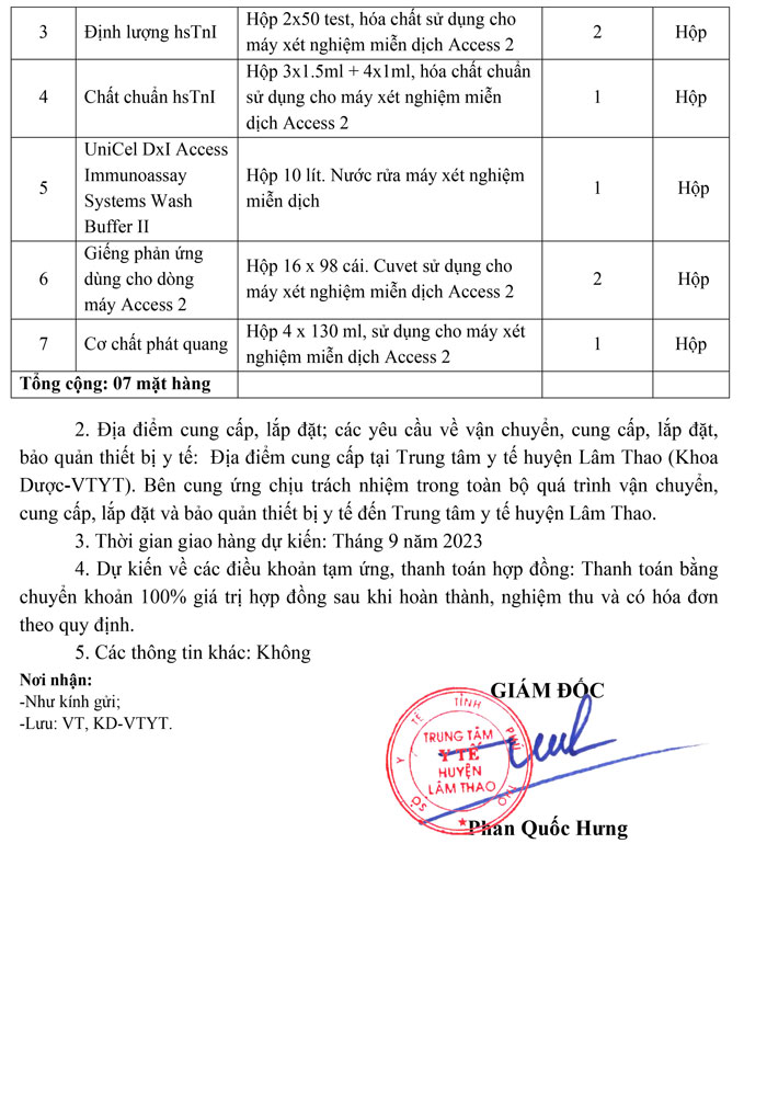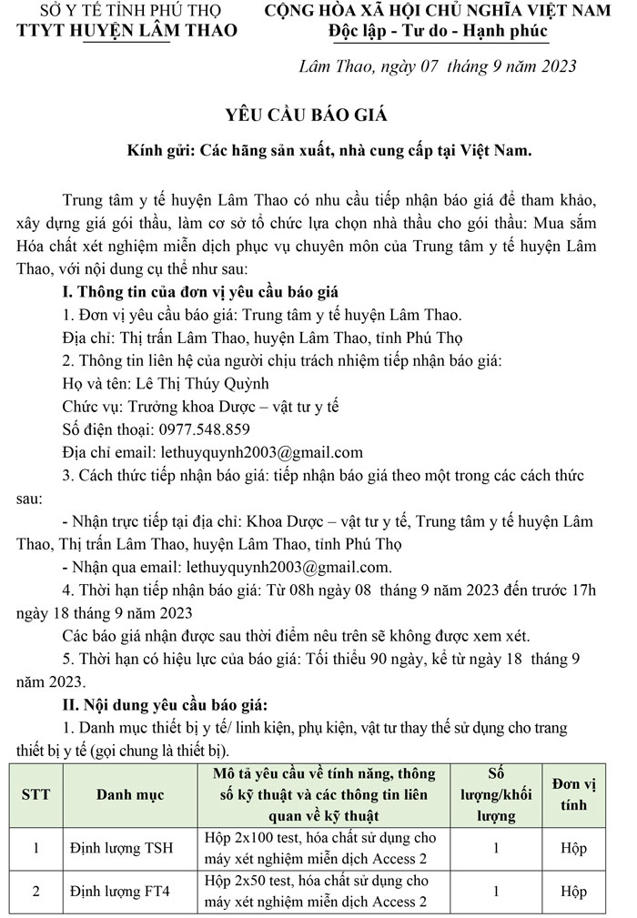 Yêu cầu báo giá hóa chất xét nghiệm miễn dịch