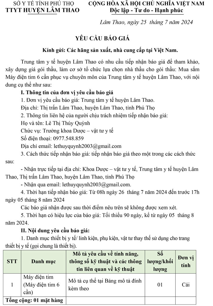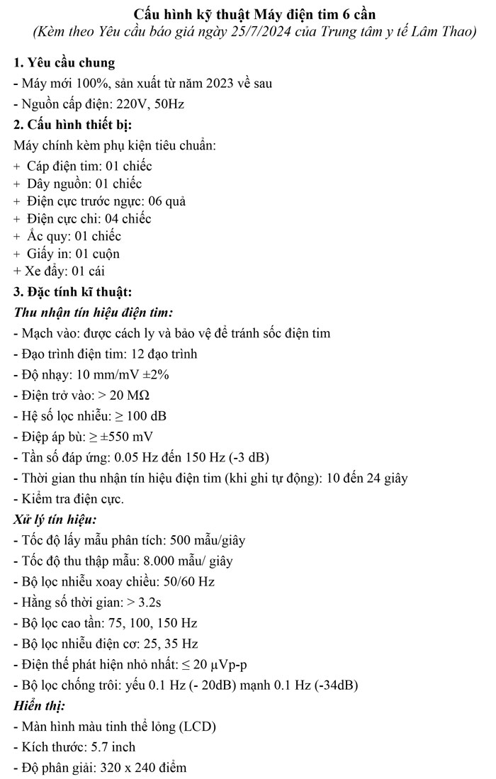 Yêu cầu báo giá máy điện tim (Máy điện tim 6 cần)