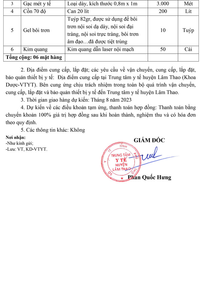 Yêu cầu báo giá thiết bị