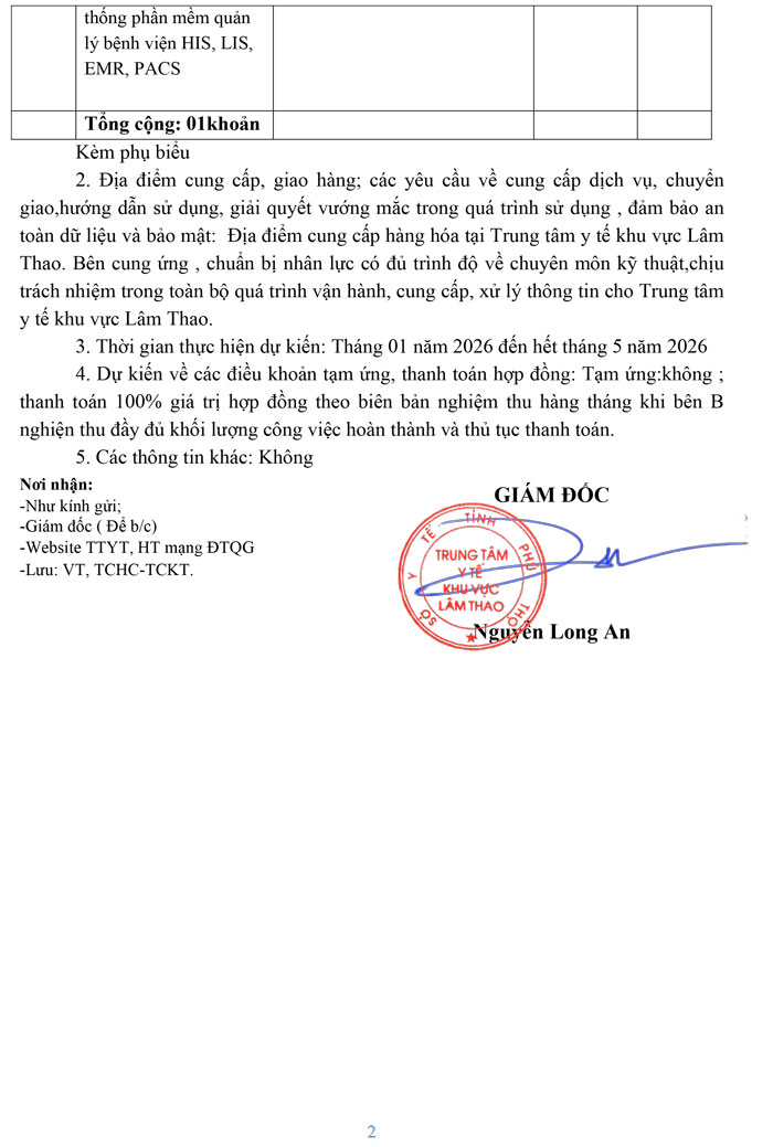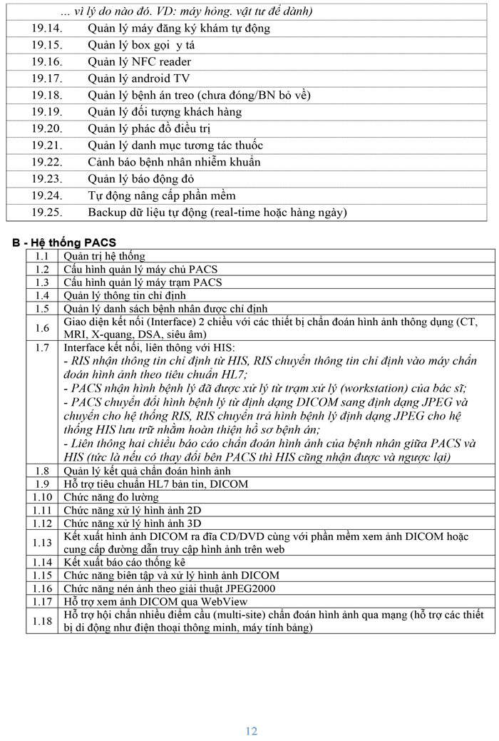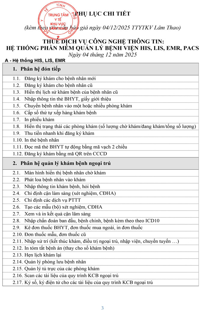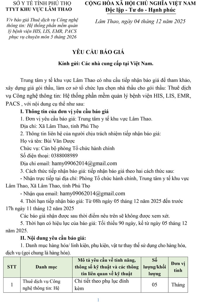 Yêu cầu báo giá thuê dịch vụ Công nghệ thông tin: Hệ thống phần mềm quản lý bệnh viện HIS, LIS, EMR, PACS