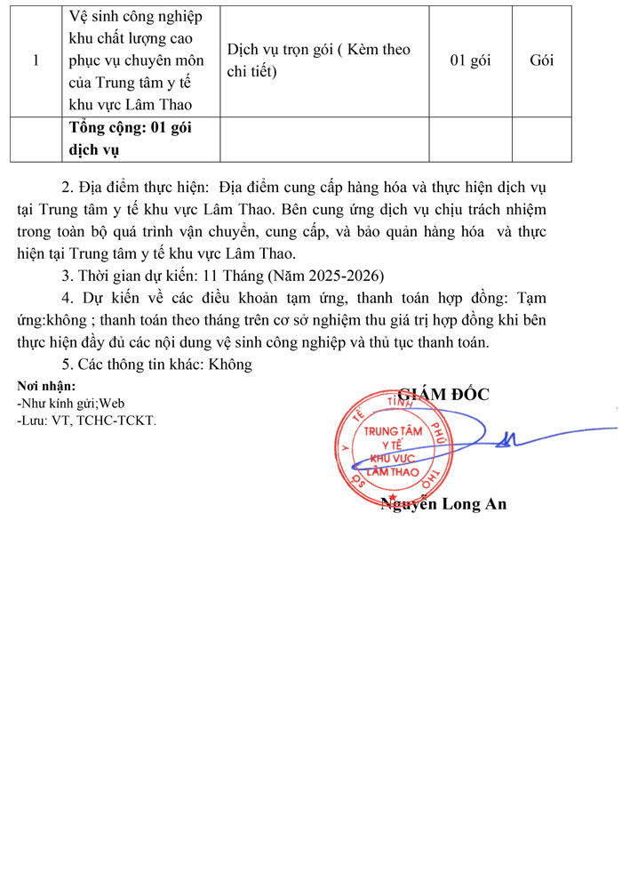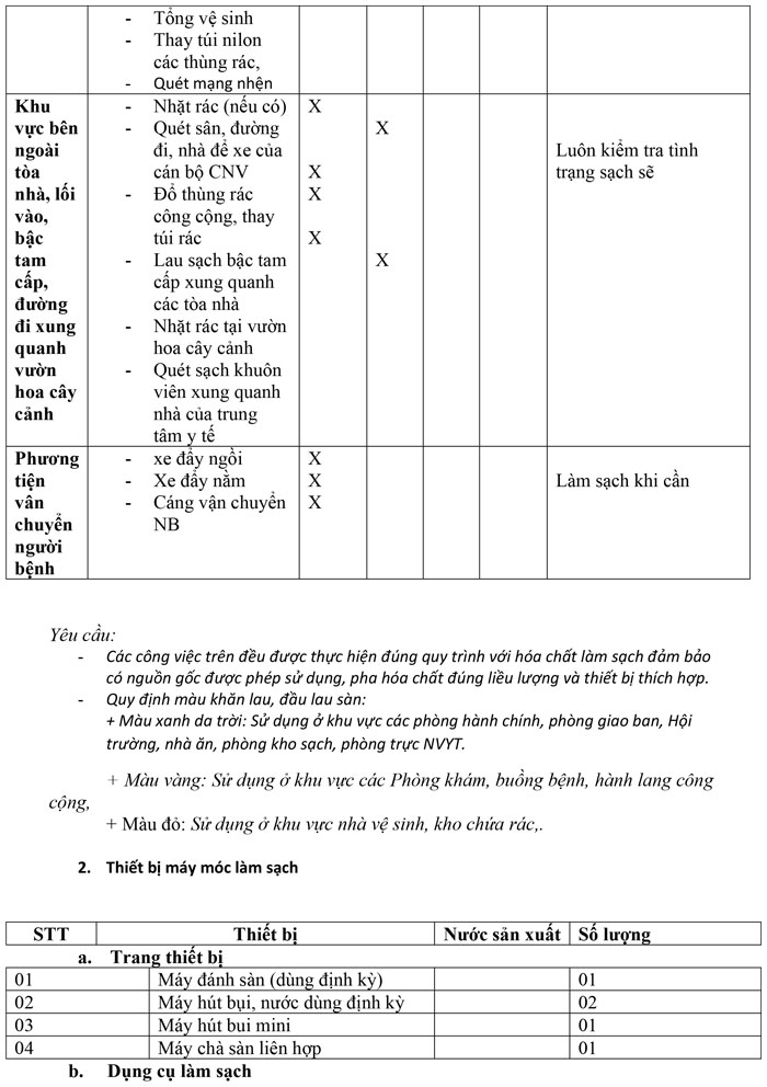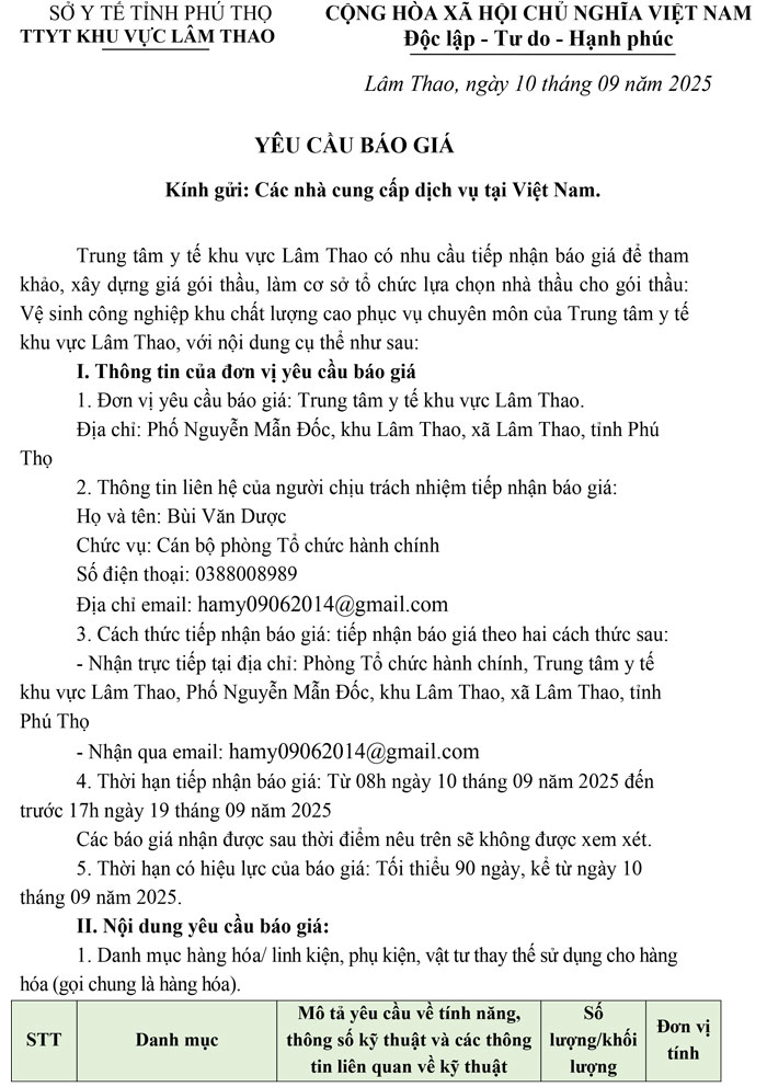 Yêu cầu báo giá vệ sinh công nghiệp khu chất lượng cao phục vụ chuyên môn của Trung tâm y tế khu vực Lâm Thao